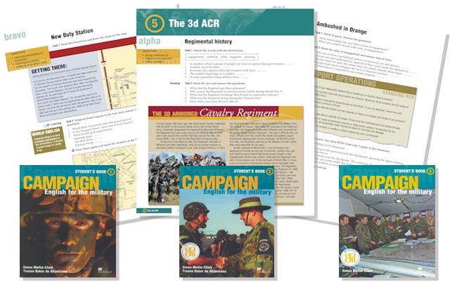 Somos los autores de la serie Campaign English for the Military. Galardonada por el English Speaking Union y por el British Council, Campaign es el primer método de inglés específicamente escrito para personal de las FAS y FCS.